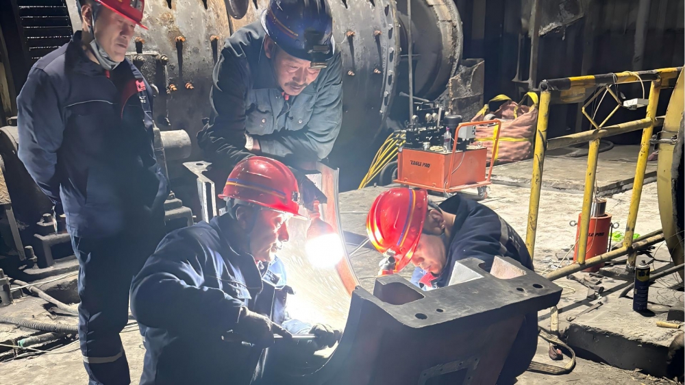 故障發(fā)生后,白玉銀興公司經(jīng)理田東清迅速抵達(dá)現(xiàn)場(chǎng),根據(jù)設(shè)備故障狀況進(jìn)行現(xiàn)場(chǎng)研判并采取果斷措施進(jìn)行停機(jī)搶修。在搶修現(xiàn)場(chǎng),黨員干部主動(dòng)亮身份、扛重?fù)?dān),充分發(fā)揮先鋒模范作用,成為搶修隊(duì)伍中的“主心骨”。田東清帶領(lǐng)維修團(tuán)隊(duì)趴在設(shè)備旁仔細(xì)排查故障點(diǎn),在刮瓦環(huán)節(jié)精細(xì)操刀,憑借多年豐富經(jīng)驗(yàn)和專業(yè)技術(shù)儲(chǔ)備,勾畫出完美的弧線。為了加快搶修進(jìn)度,搶修人員放棄休息時(shí)間,輪班作戰(zhàn)、每天連續(xù)工作16小時(shí),累了就趴在桌上短暫小憩,始終堅(jiān)守在搶修一線。食堂將飯菜、飲用水送到現(xiàn)場(chǎng),確保搶修人員有充沛的體力。